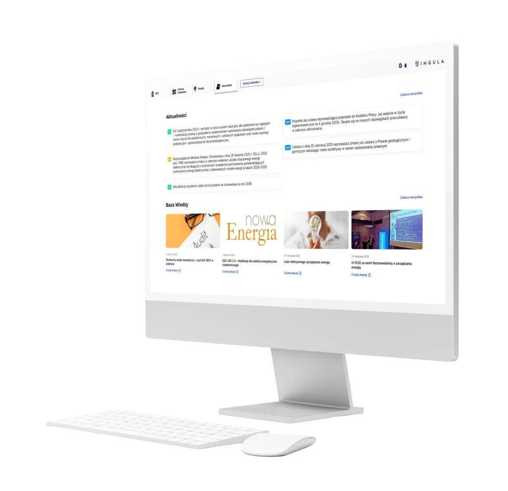 SINGULA to inteligentna platforma wiedzy w modelu SaaS, stworzona z myślą o firmach, które chcą mieć pełną kontrolę nad zgodnością działań w obszarze BHP, ochrony środowiska i zarządzania energią.
